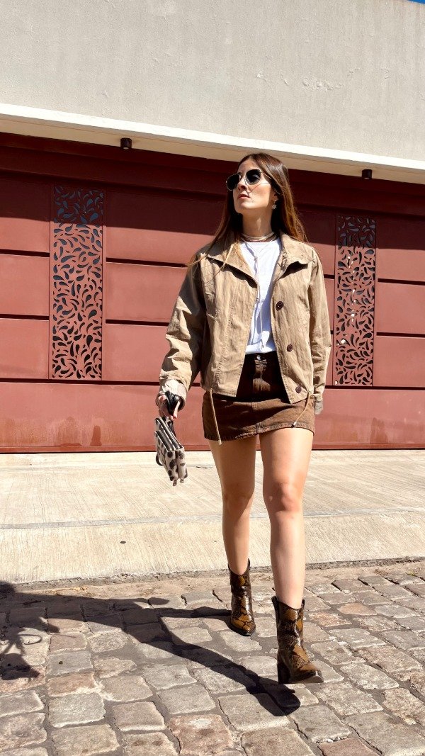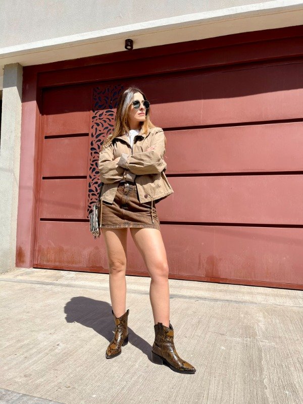 Campera de cuello alto confeccionada en cotton nylon, es de calce holgado y de largo hasta la cadera. Detalles de recortes y pinzas con pespunte a tono, tanto en manga como cuerpo.