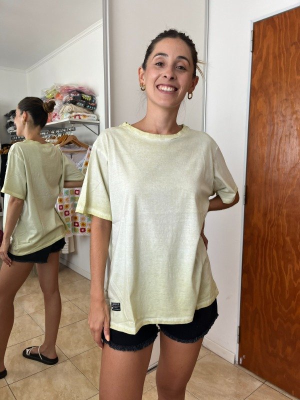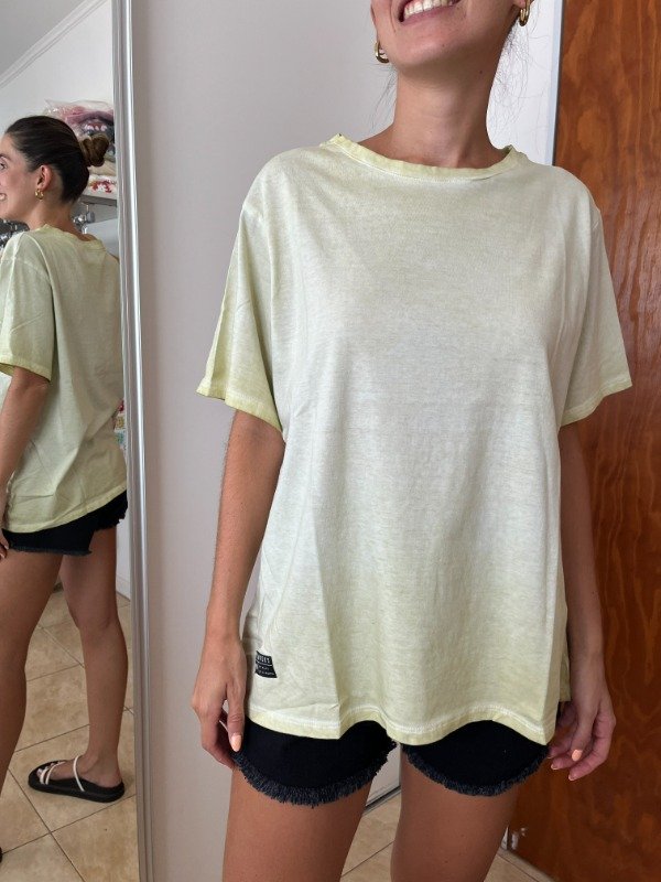 Remera oversized manga corta con escote redondo y etiqueton de marca en el lateral.